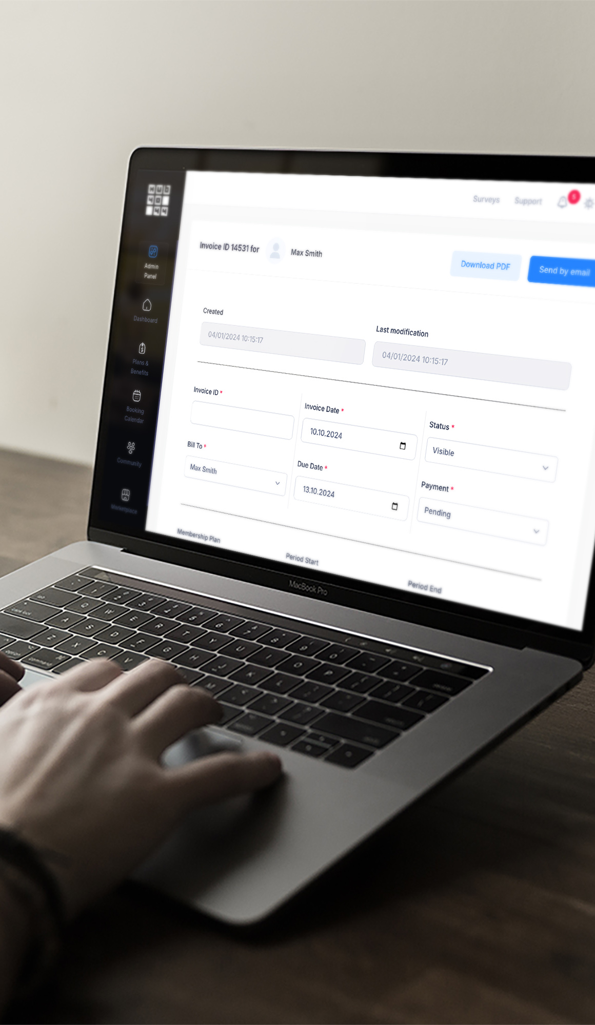 - + Automatically issue invoices for users with active membership plan, generate PDFs, and notify users of status changes and overdue payments.